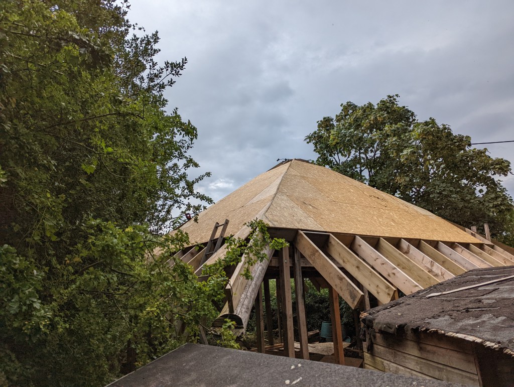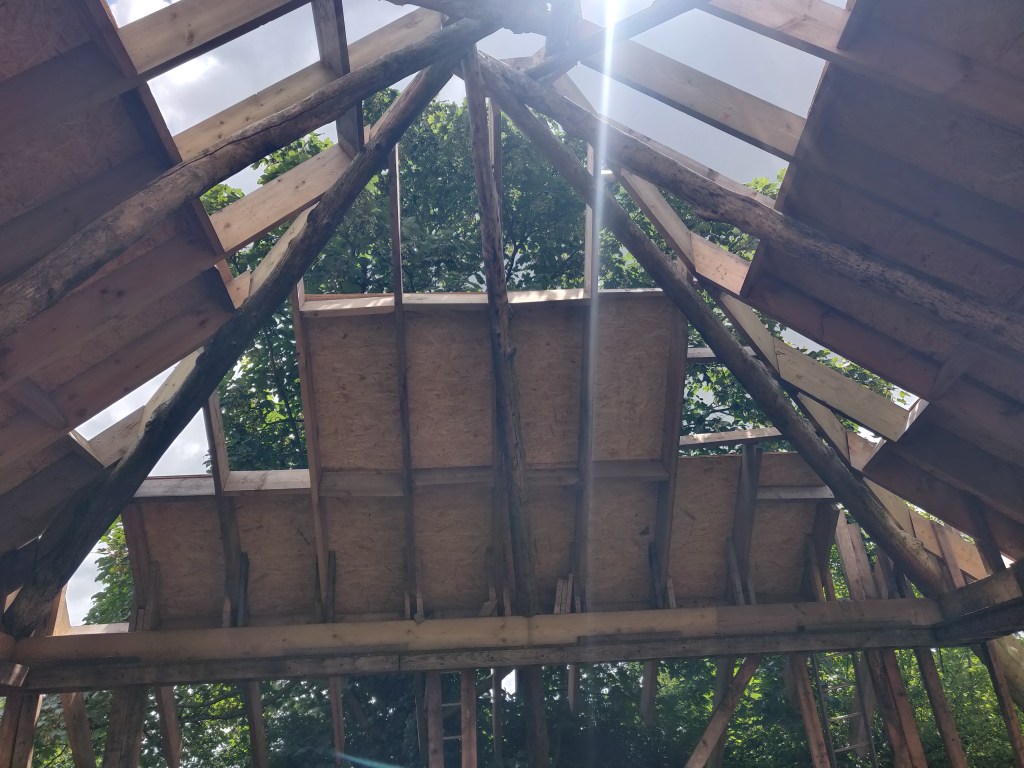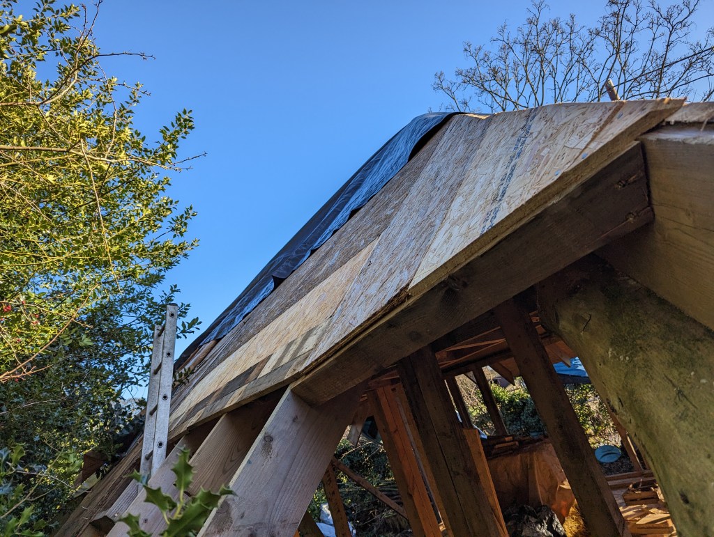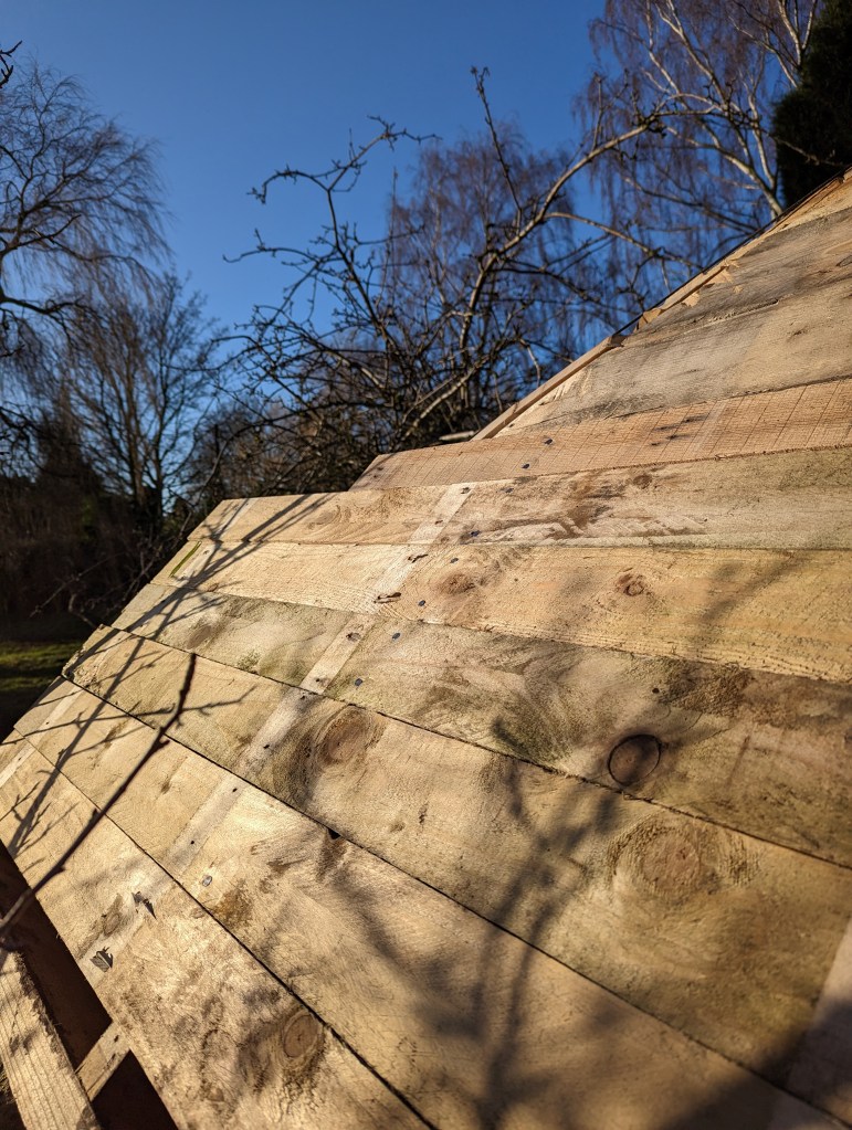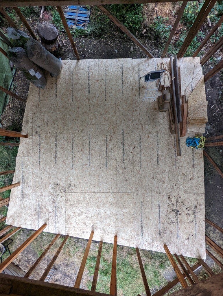 The very top of the roof needed boarding with OSB but it was quite fiddly. The boards were very grippy so I didn’t need scaffolding or ropes.