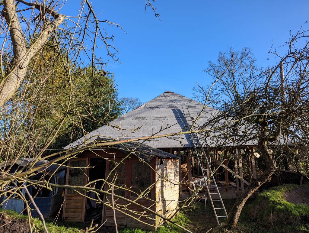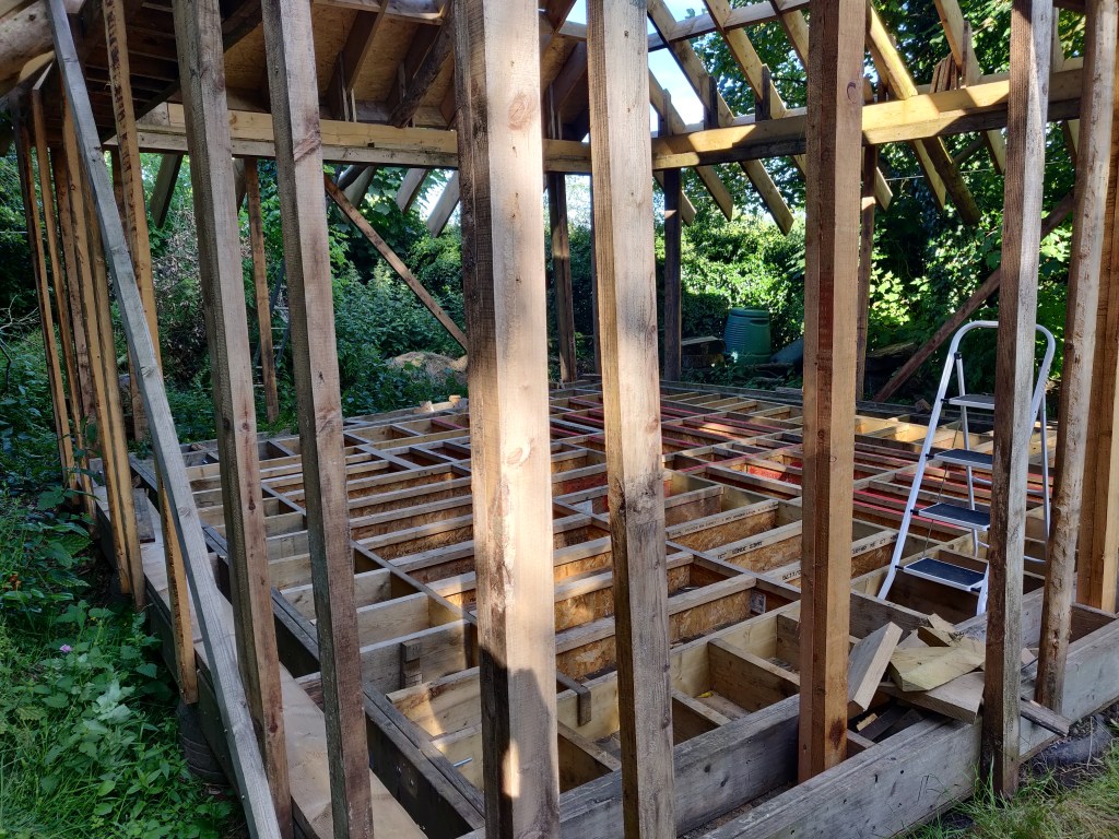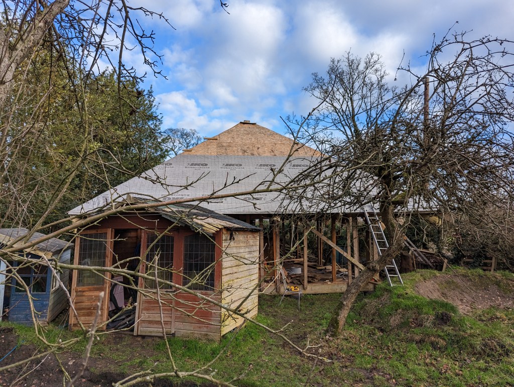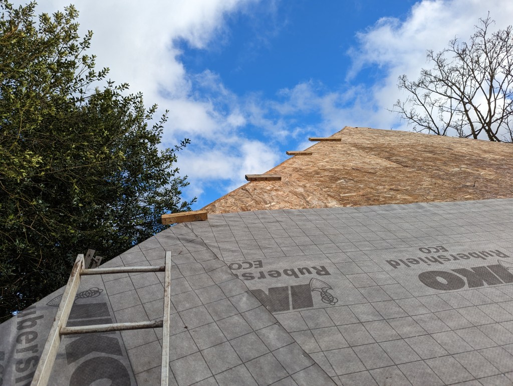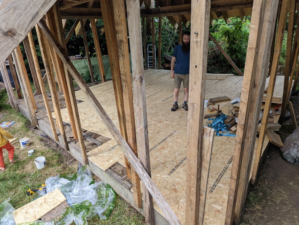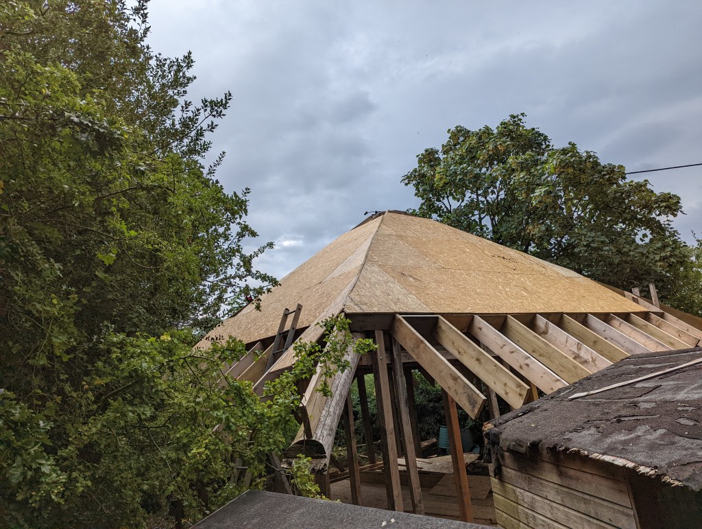 The very top of the roof needed boarding with OSB but it was quite fiddly. The boards were very grippy so I didn’t need scaffolding or ropes.