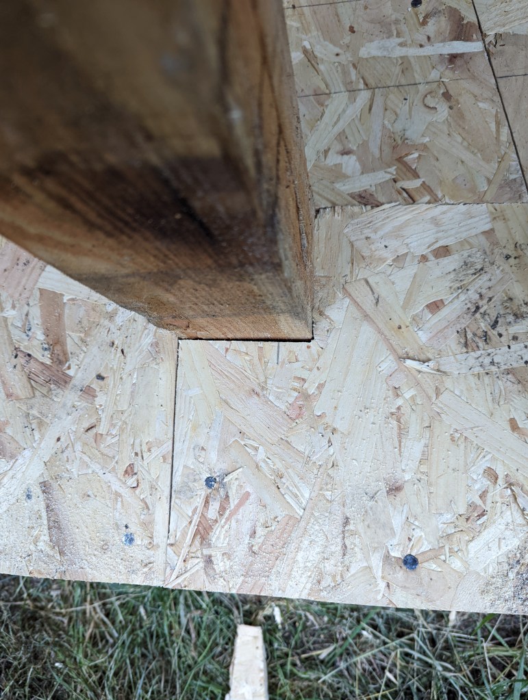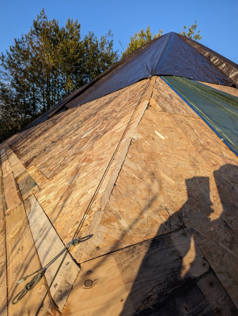 I also covered the roof with tarps during this period to try to minise the wear on the OSB. The roof OSB wasn’t SmartPly (though I was told it was) and it degrated in the weather much more quickly than SmartPly, so I wouldn’t get it again. I think it was Kronospan.