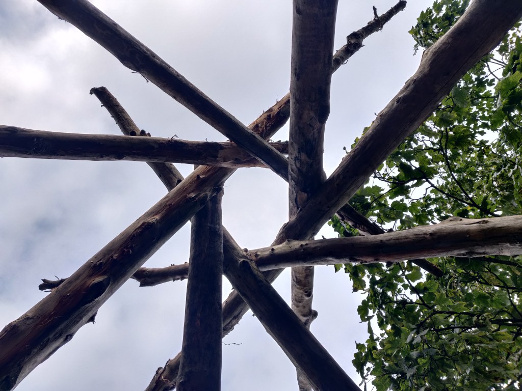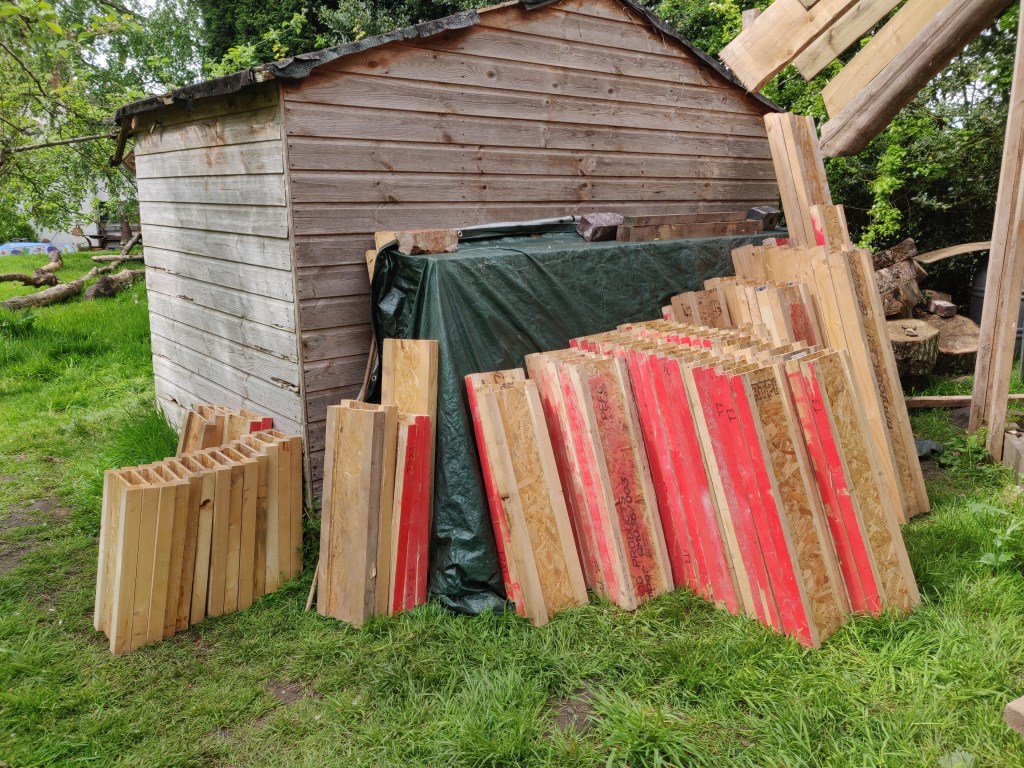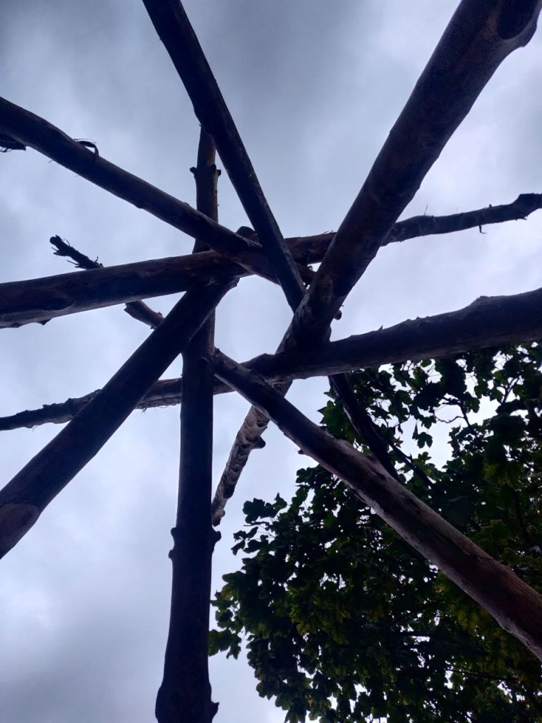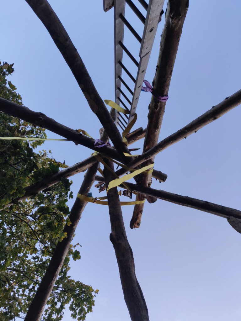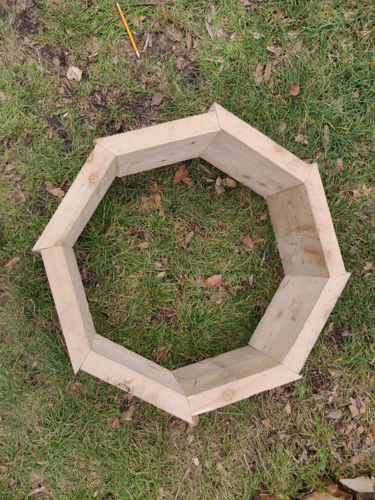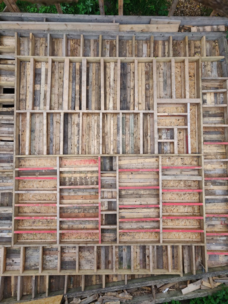 Once the roof was up to height, the next step was to build a ring beam to go at the top of the reciprocal roof, to attach the rafters too.