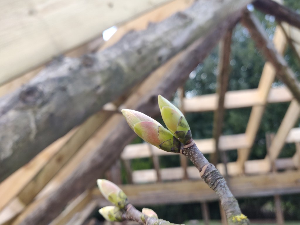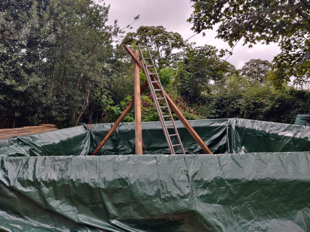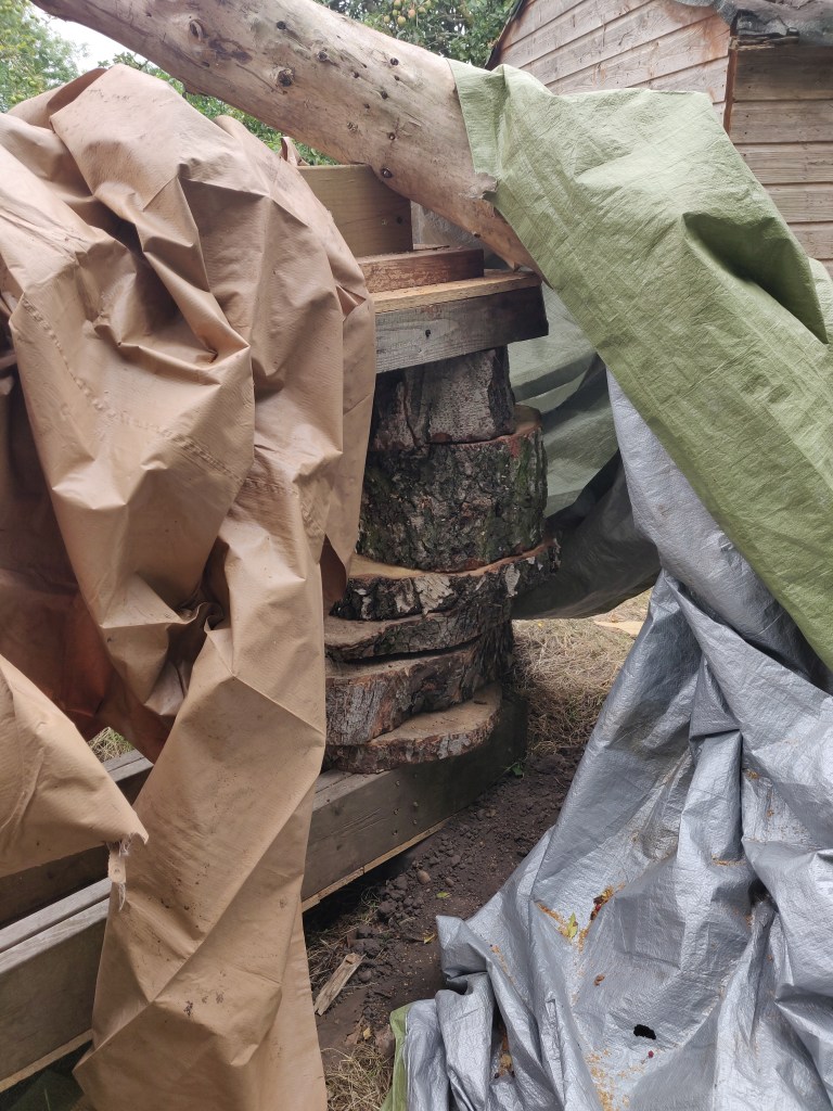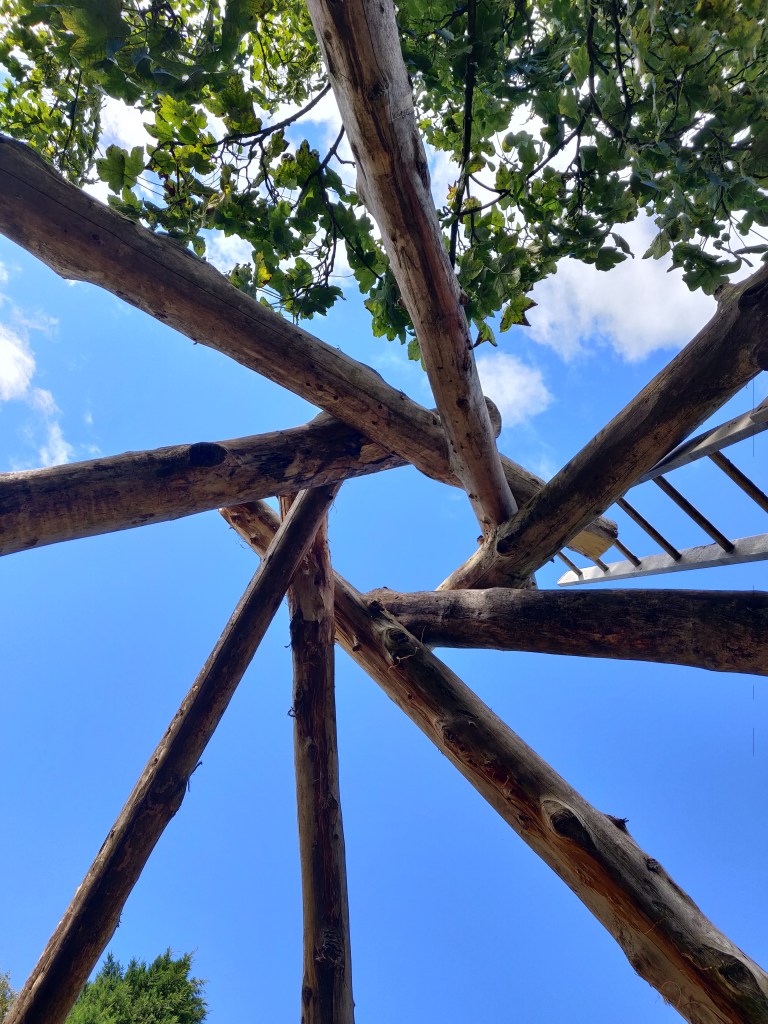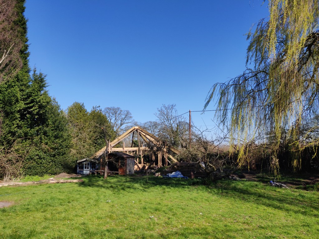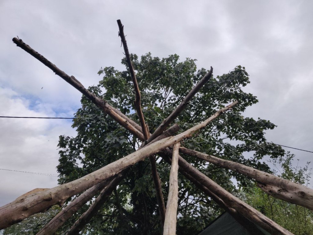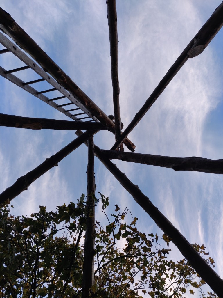 Once the roof was up to height, the next step was to build a ring beam to go at the top of the reciprocal roof, to attach the rafters too.