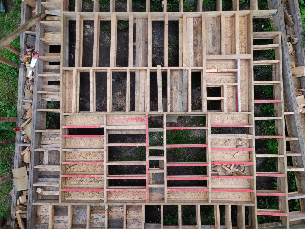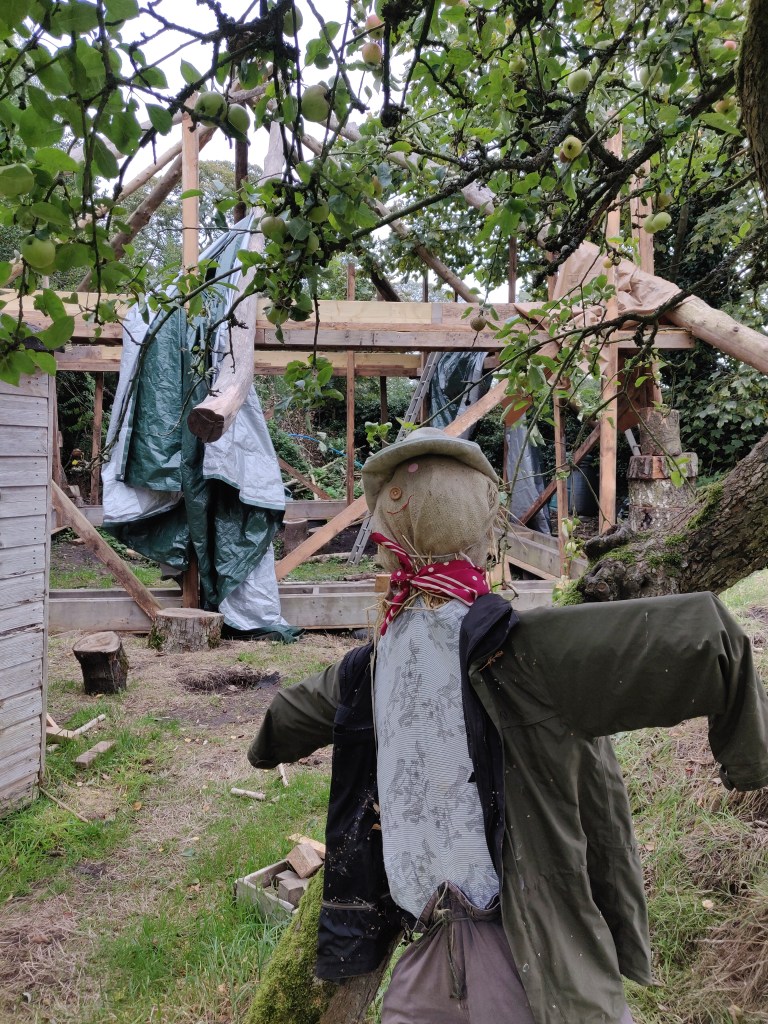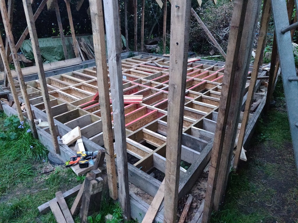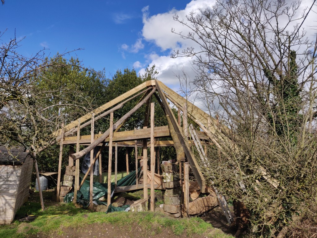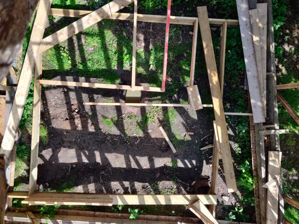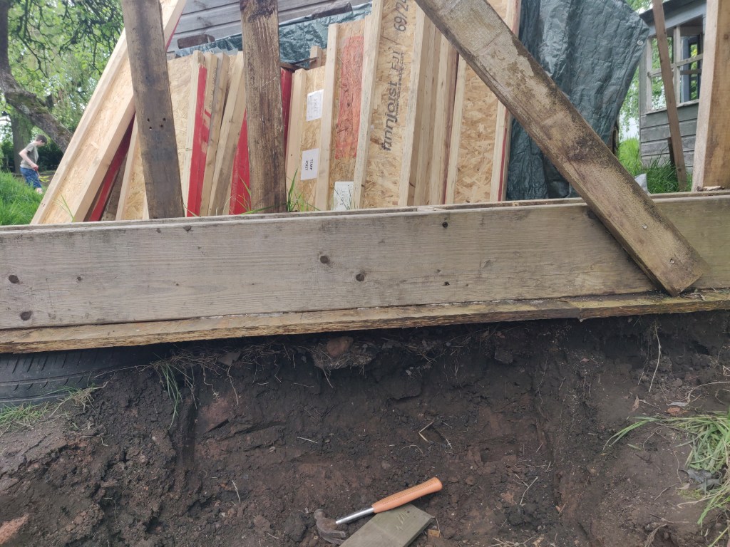 Once the roof timbers were in place it was time to raise the roof plate to the right hight to fit the bales in. One obvious question is, why not do this before the rafters were on – surely that would have been much easier.