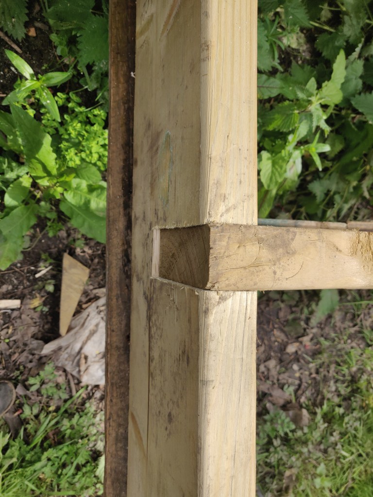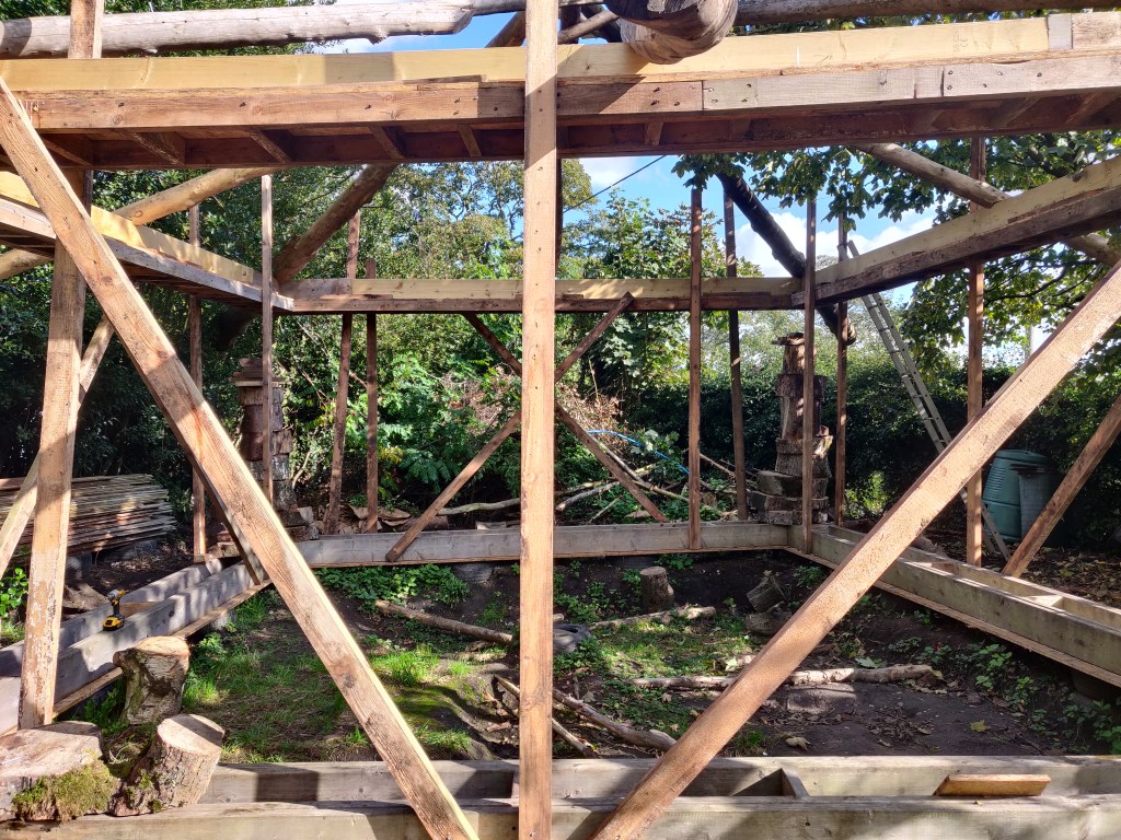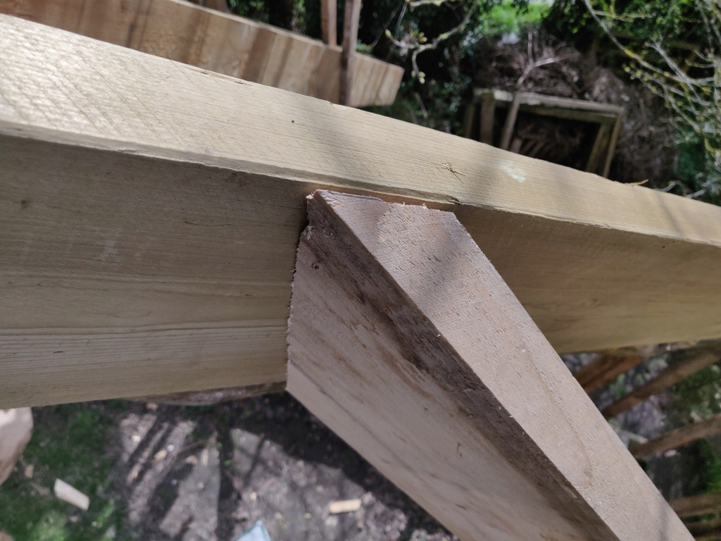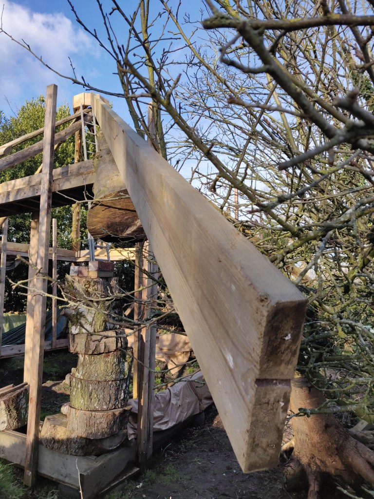 These timbers are 10 inches by 2 inches and 10 metres long. I moved them into place on my own, cut the joints and screwed them into place. I only broke one finger.