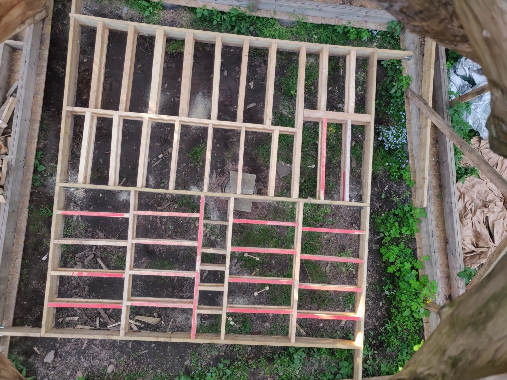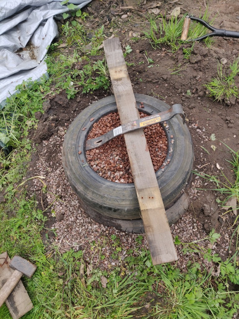 First there was a bit of prep work to do. I had to fix one of the floor boards that had come away, and also add a central tyre to support the middle of the floor. Technically the central support wasn’t needed as the floor would be supported only from the base plate on the edge tyres, but an extra support never hurt anyone: