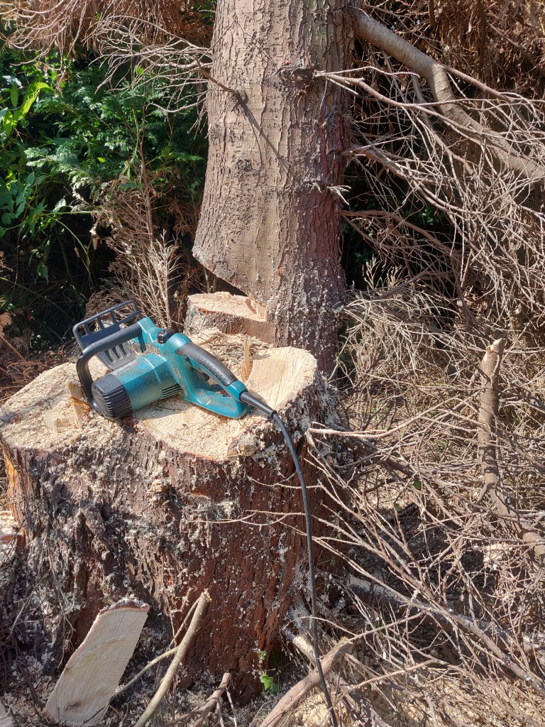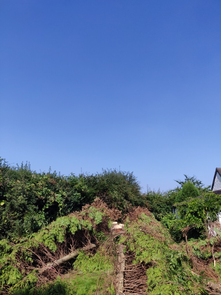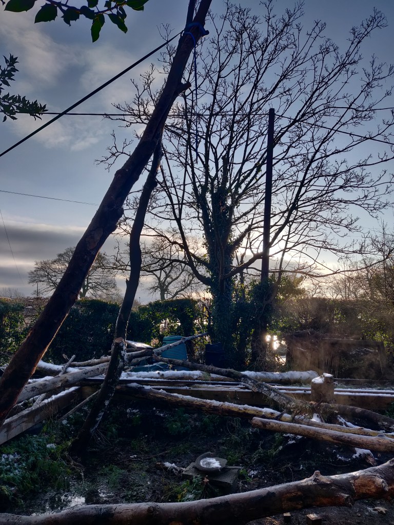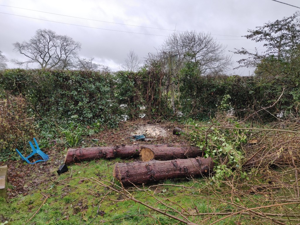 I was very careful not to let the timbers fall on the the house next door. So careful that I didn’t notice the telephone wire running right where the tree fell. The neighbours were without internet for the rest of the day. Sorry Dan and Carolone!