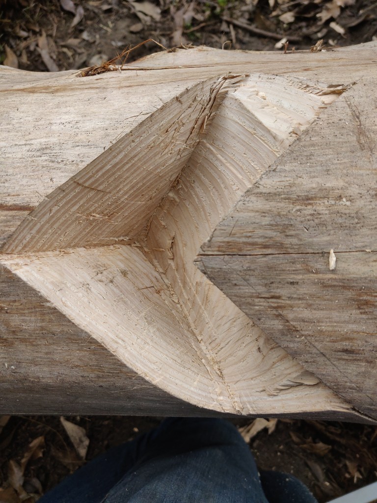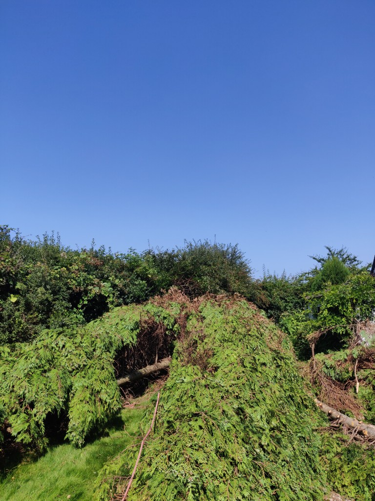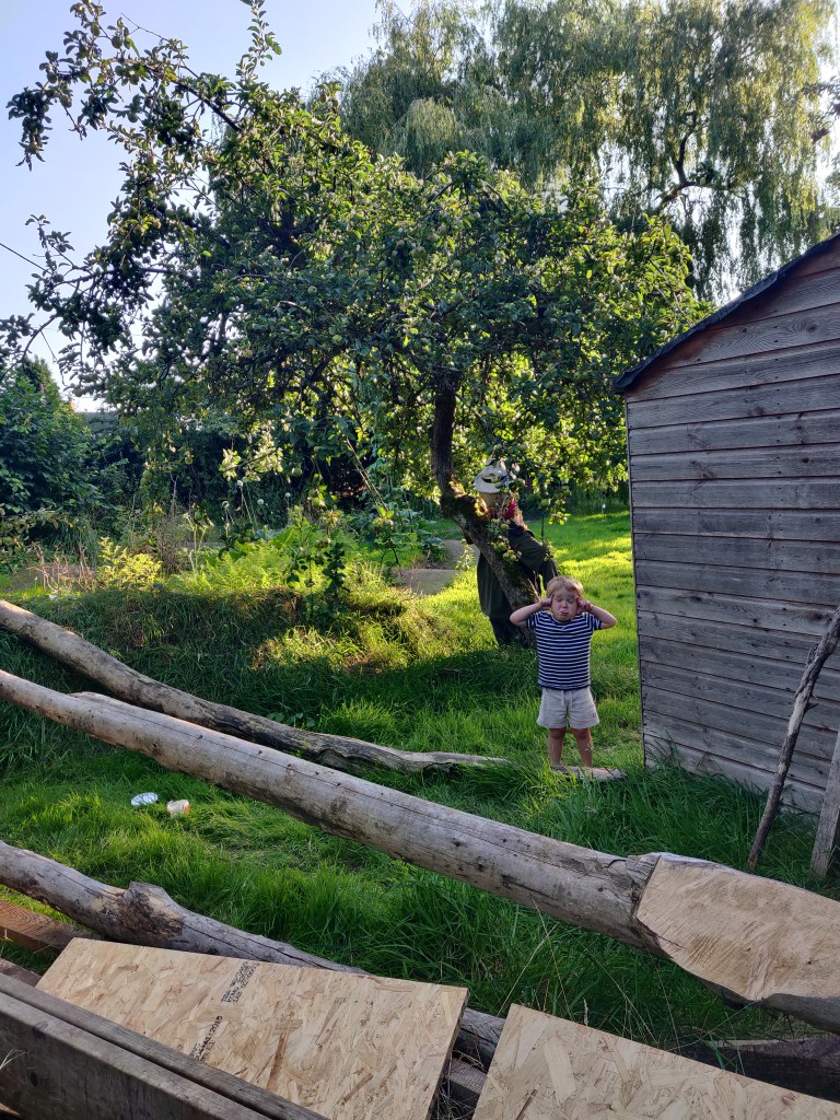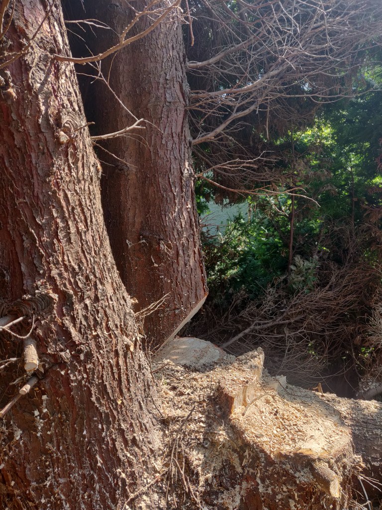 I was very careful not to let the timbers fall on the the house next door. So careful that I didn’t notice the telephone wire running right where the tree fell. The neighbours were without internet for the rest of the day. Sorry Dan and Carolone!