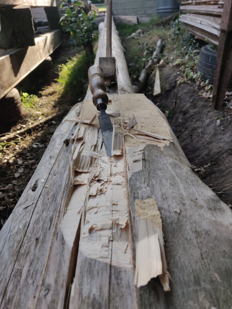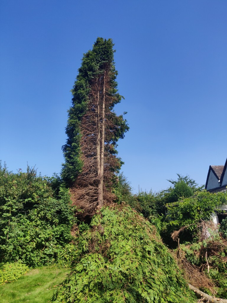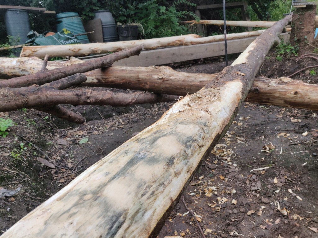 This big tree in the front garden was too close to the house and needed to come down anyway. I was going to fell it and use it for firewood but then I realised it would be perfect for the roof timbers.
