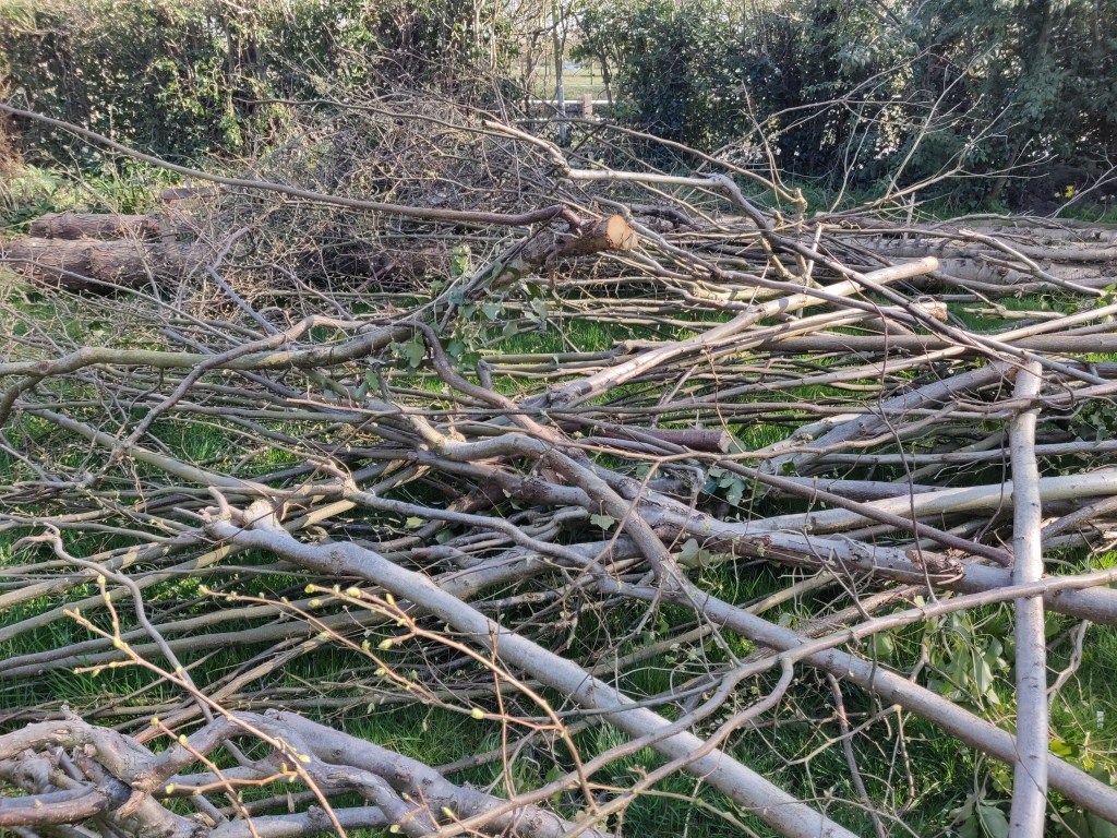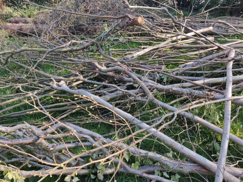 Once they were down I moved all the brush away. We are still using it for kindling even now in 2023.