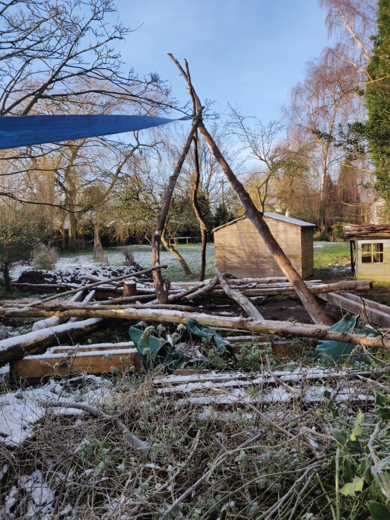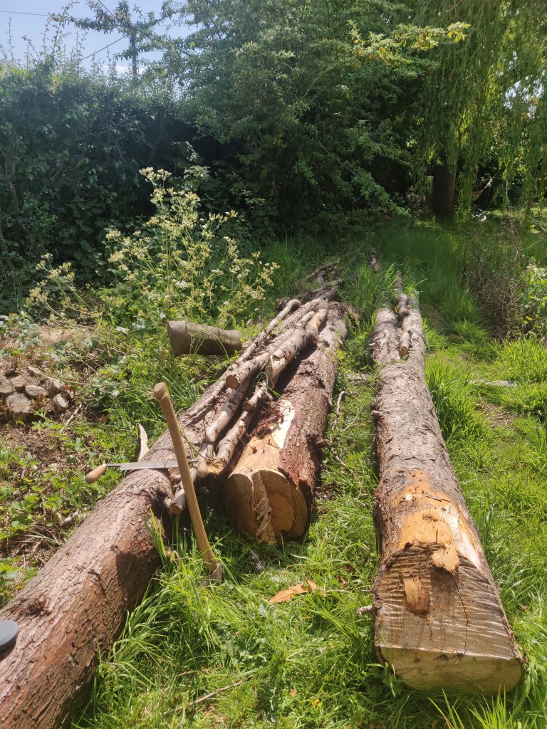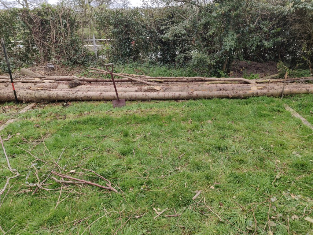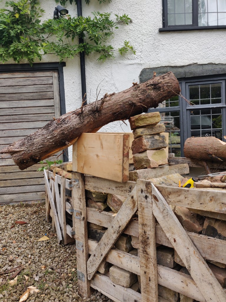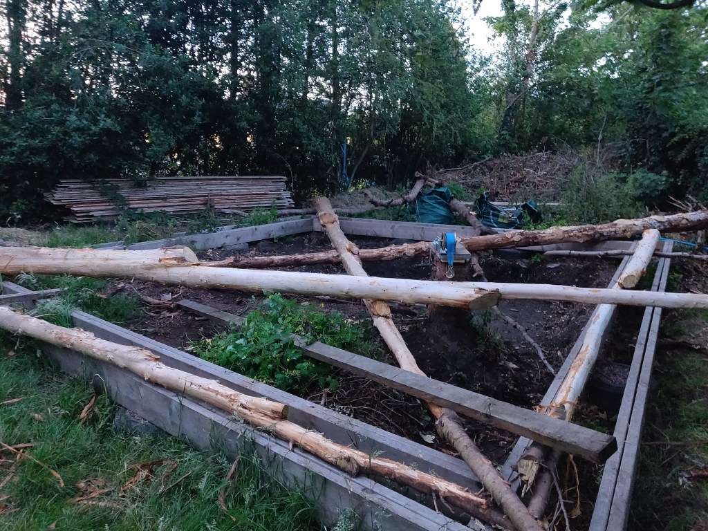 Moving the timbers from the front garden to be near the studio was incredibly hard. It took a group of about 6 people dragging them across the lawn. I don’t have photos of that.