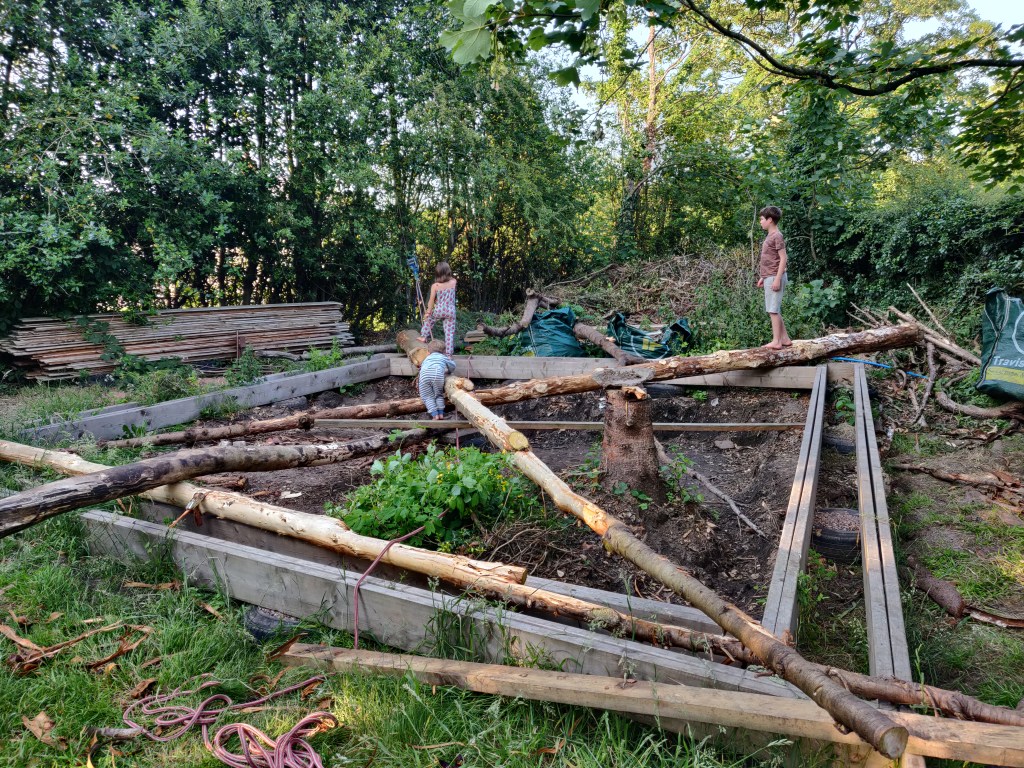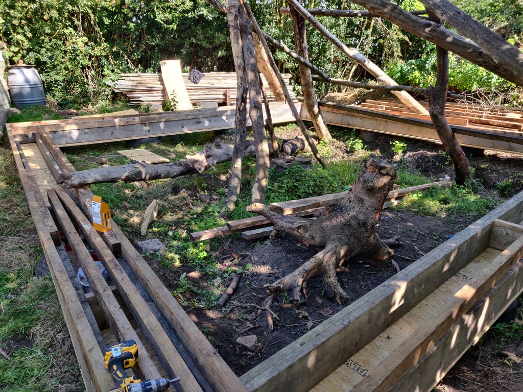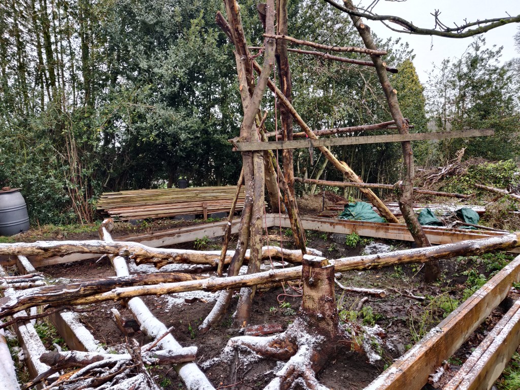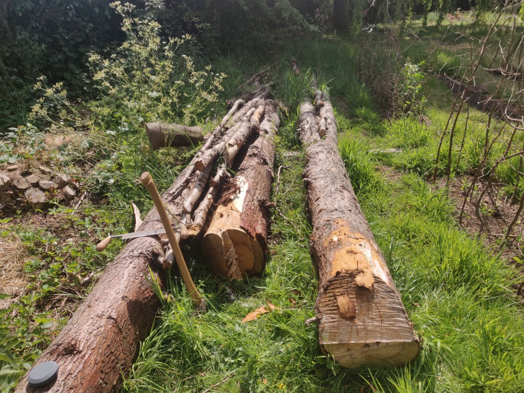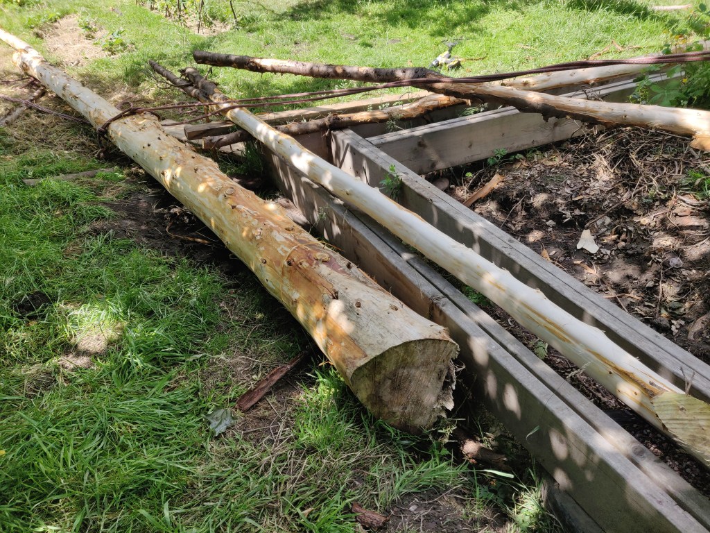 Moving the timbers from the front garden to be near the studio was incredibly hard. It took a group of about 6 people dragging them across the lawn. I don’t have photos of that.