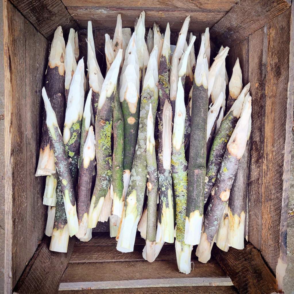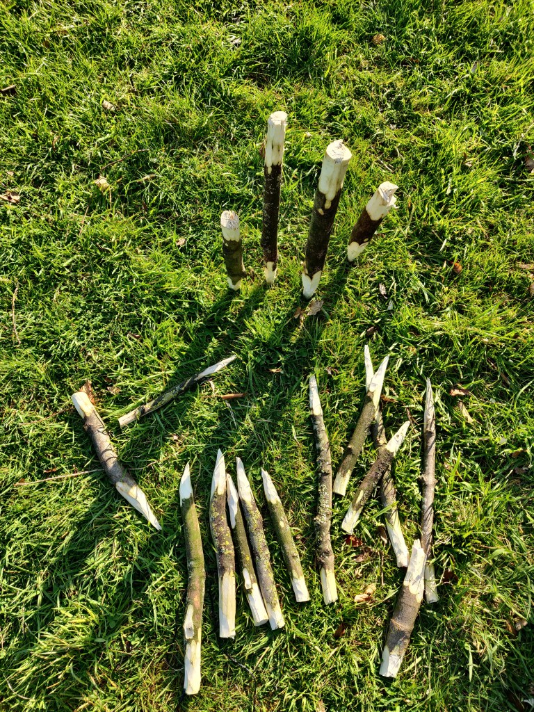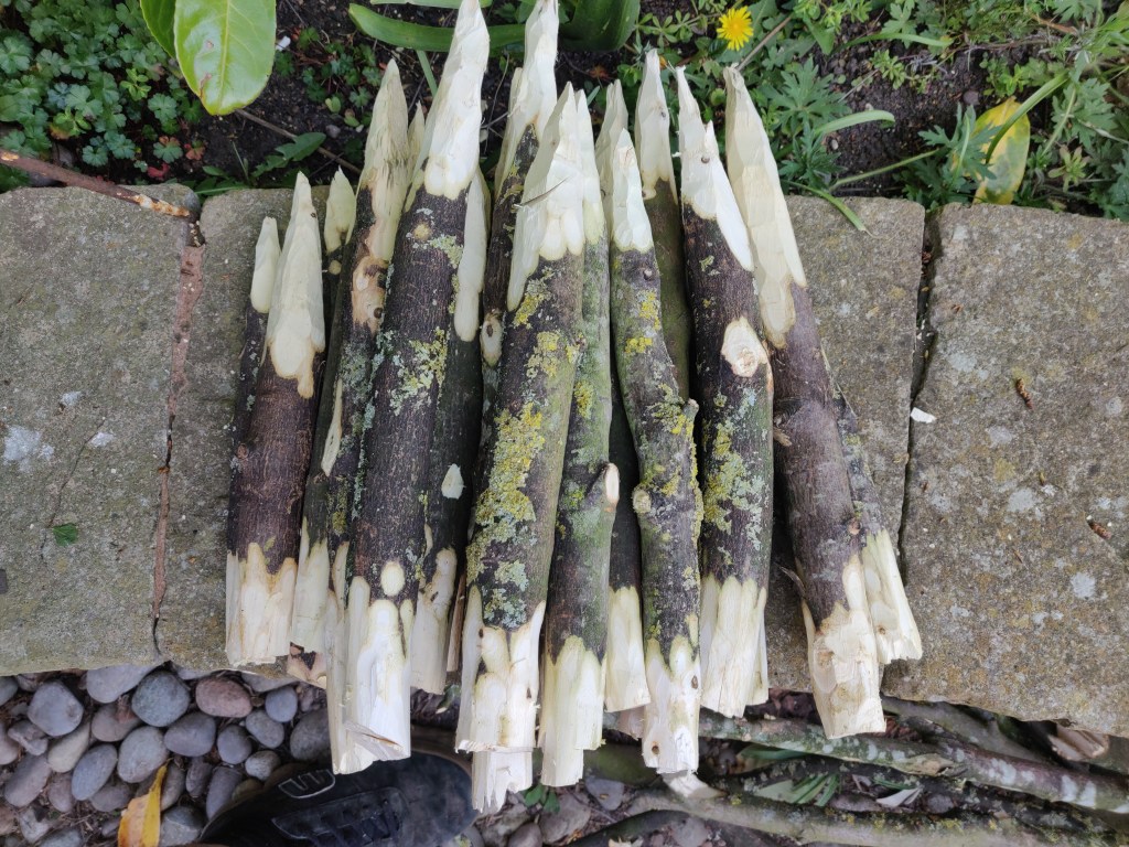 In early 2020 I coppiced the hazel tree in our garden to use for stubs and pins.