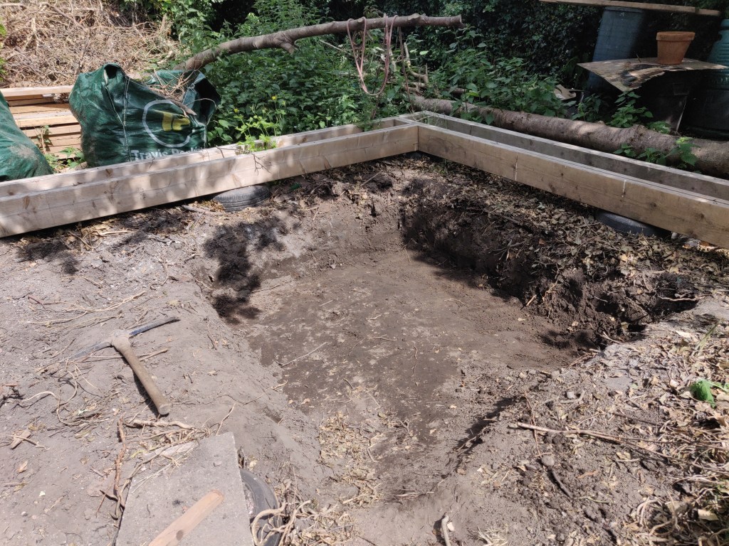 The ground under the structure was slightly too high, so we spent a while dgging it out.