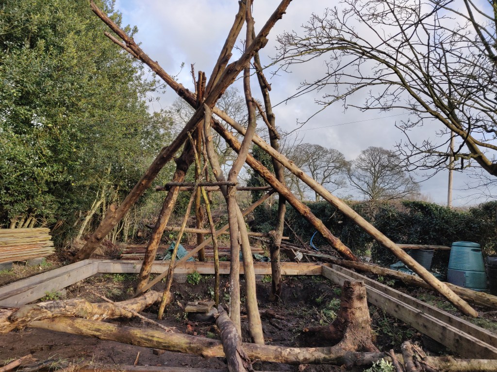 Trying to work out how to cut the bird’s mouth notches for the roof beams to sit on the wall plate was pretty tricky. I’ve not done wood working of this complexity before. I had to buy a new, sharp, chisel and then do quite a few practice cuts before I felt confident in getting it right.