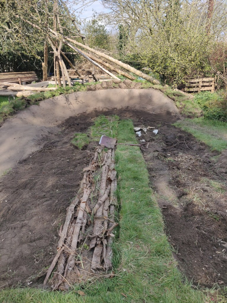 You can see a spoil pile here. This ended up being the start ramp for a BMX track. You can also see the brush from the felled trees in the background.