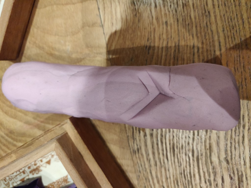 My initial model was done with plastacine so that I could get an idea of how the cut should look.