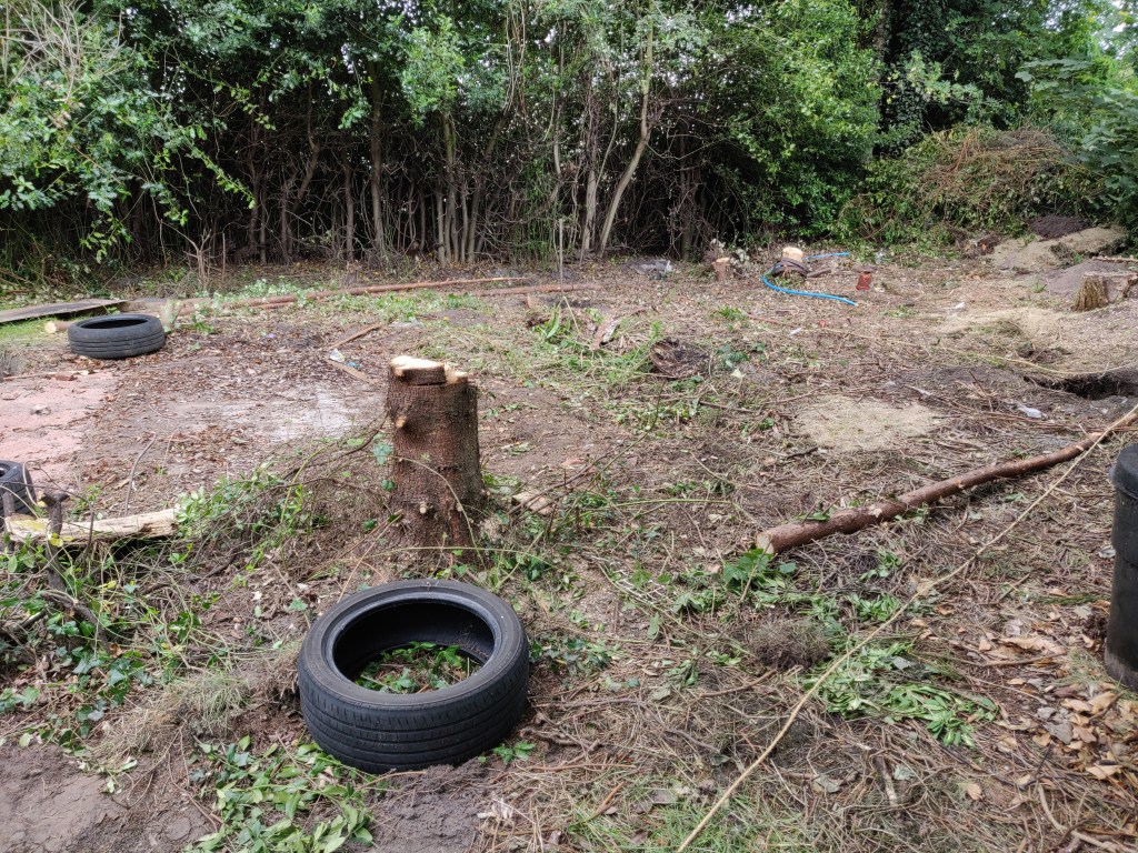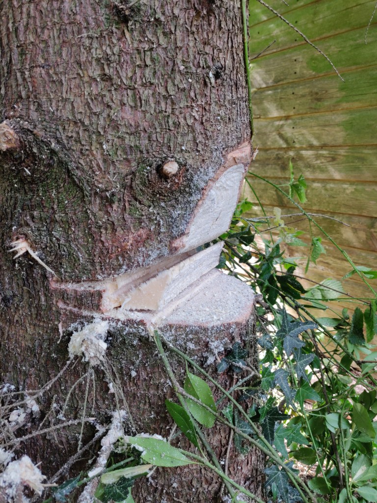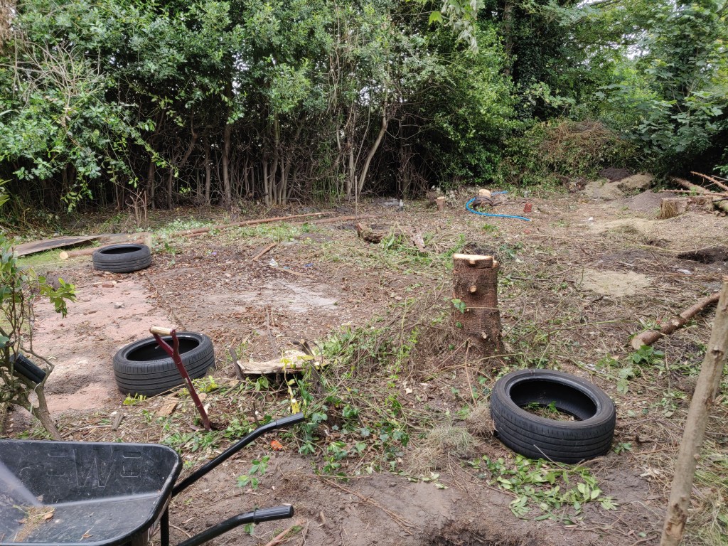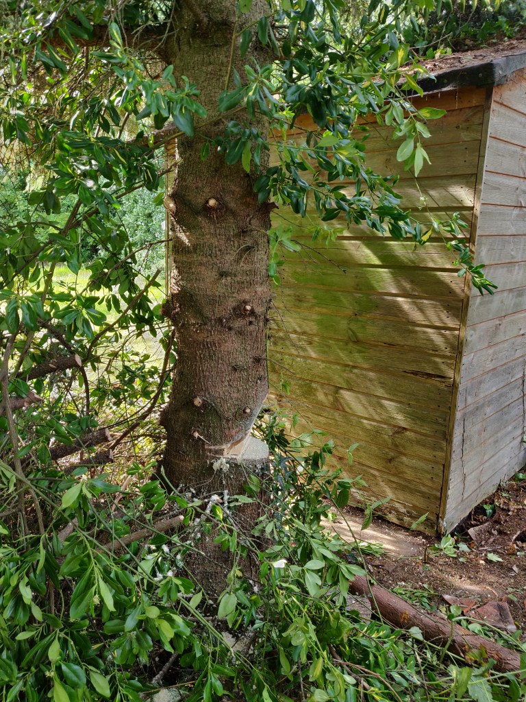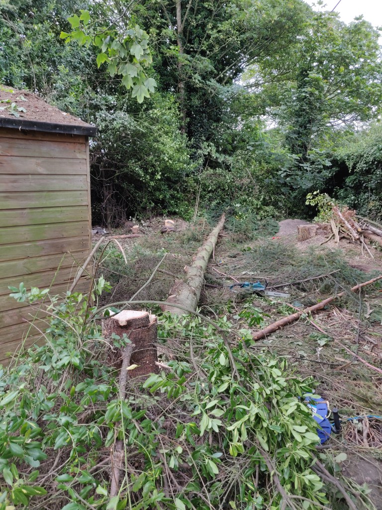 In some ways it would have been a good idea to leave this tree here for longer, so that I could use it to attach winches to for later lifting operations.
