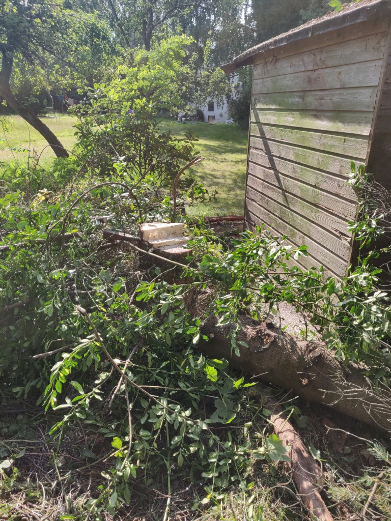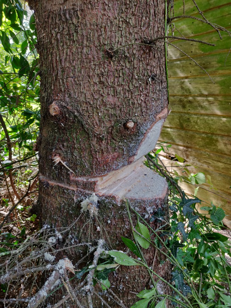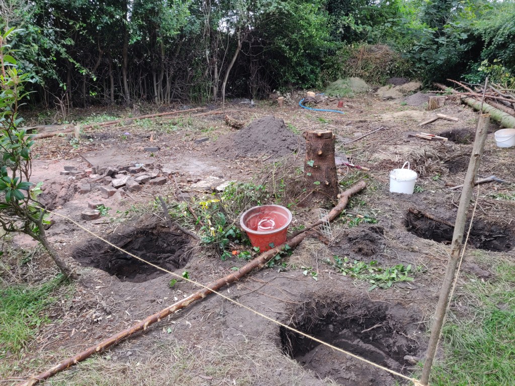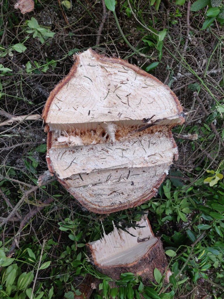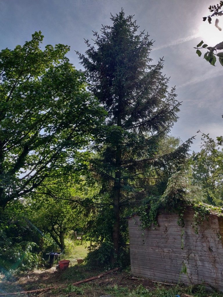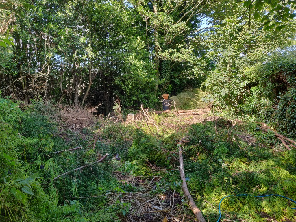 In some ways it would have been a good idea to leave this tree here for longer, so that I could use it to attach winches to for later lifting operations.