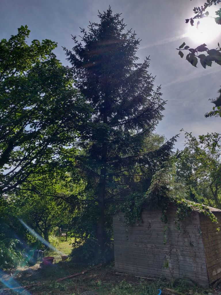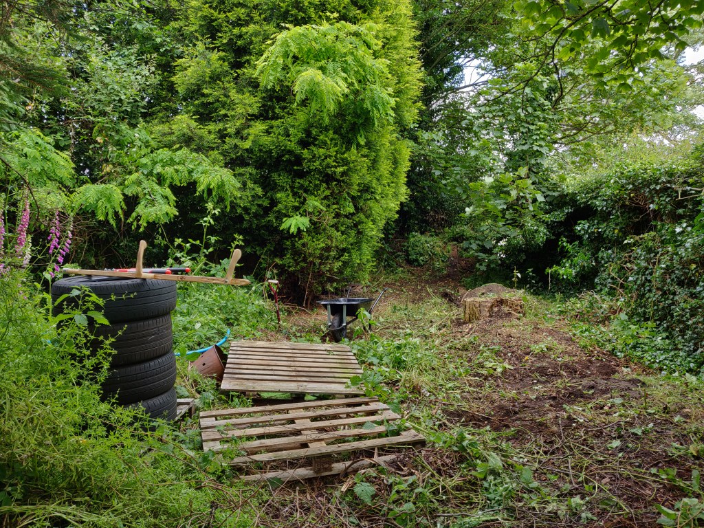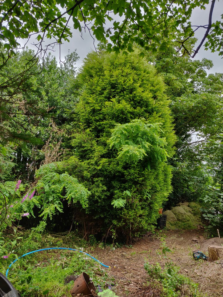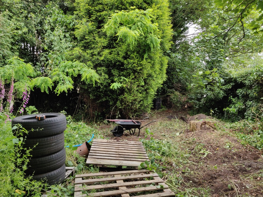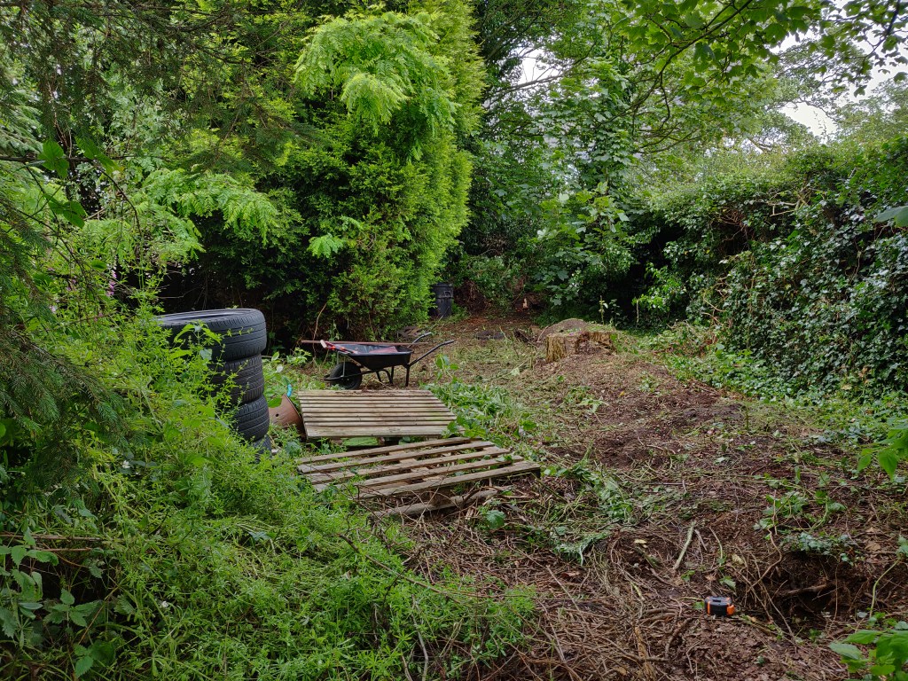 In some ways it would have been a good idea to leave this tree here for longer, so that I could use it to attach winches to for later lifting operations.