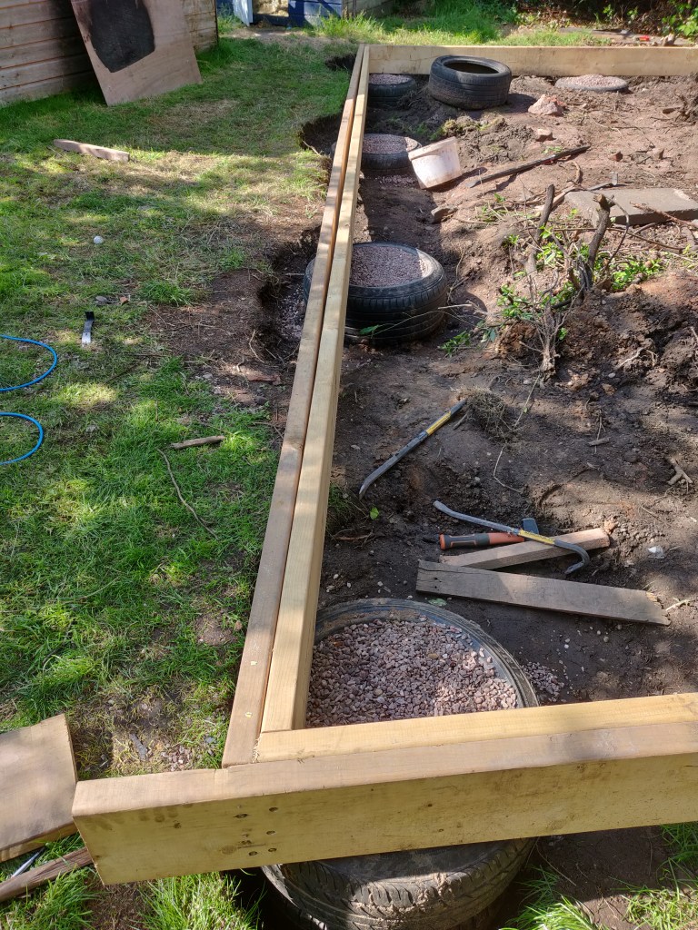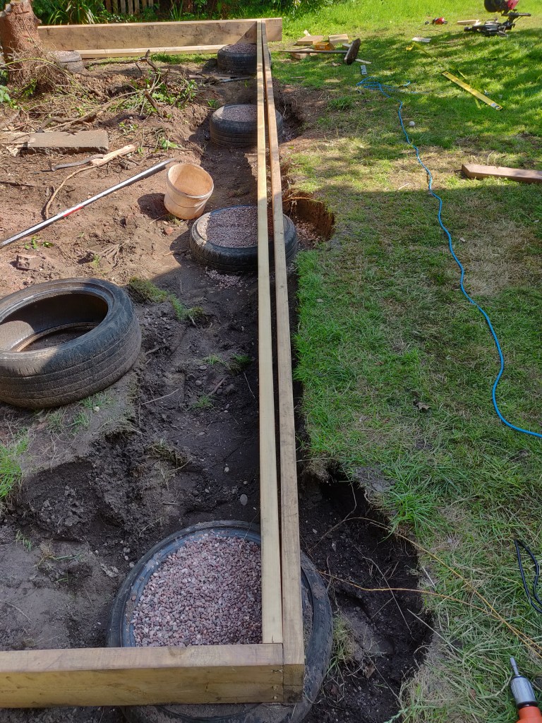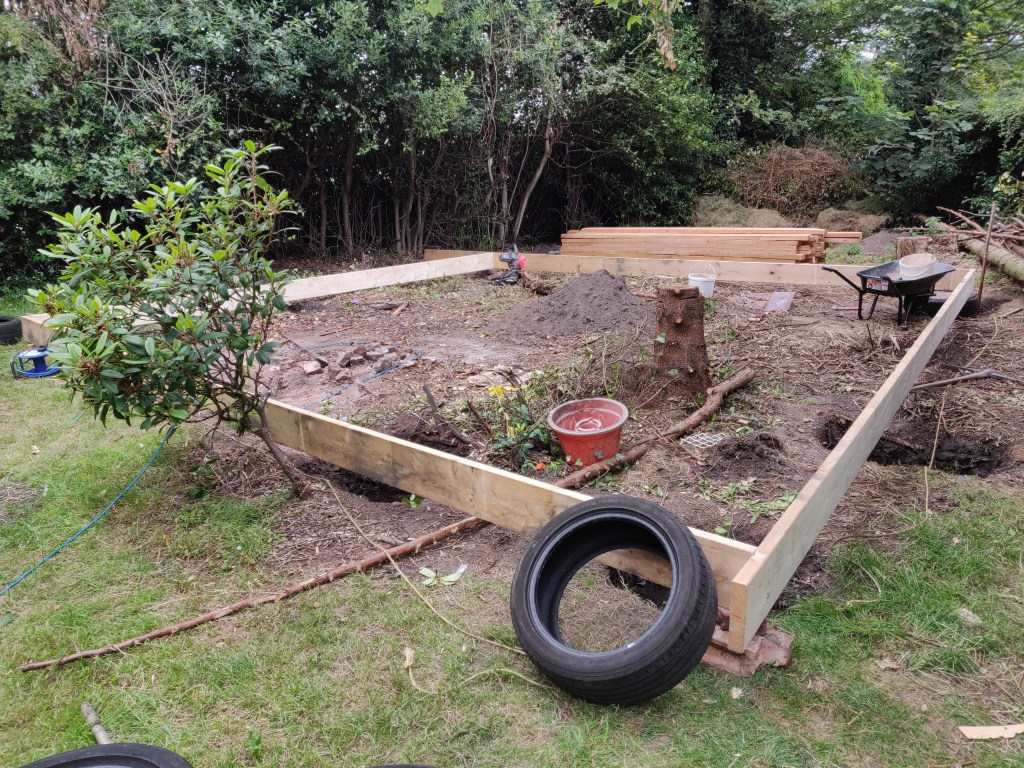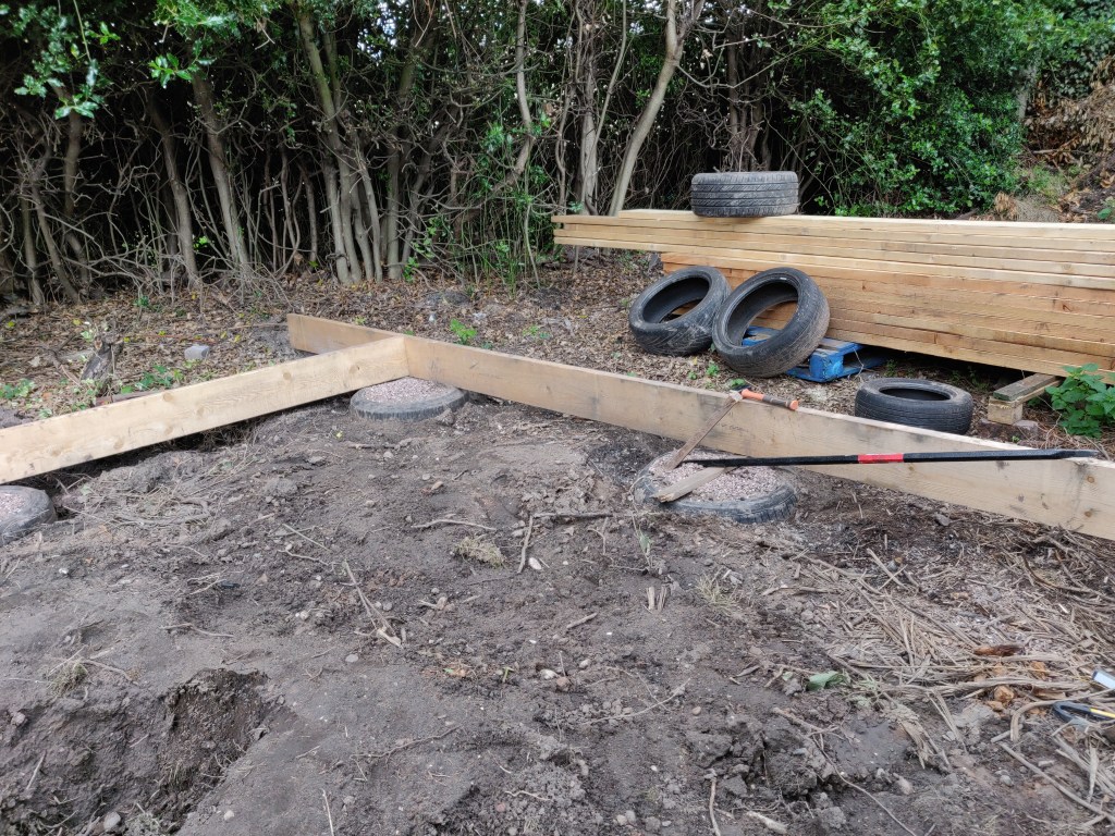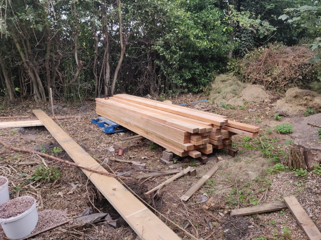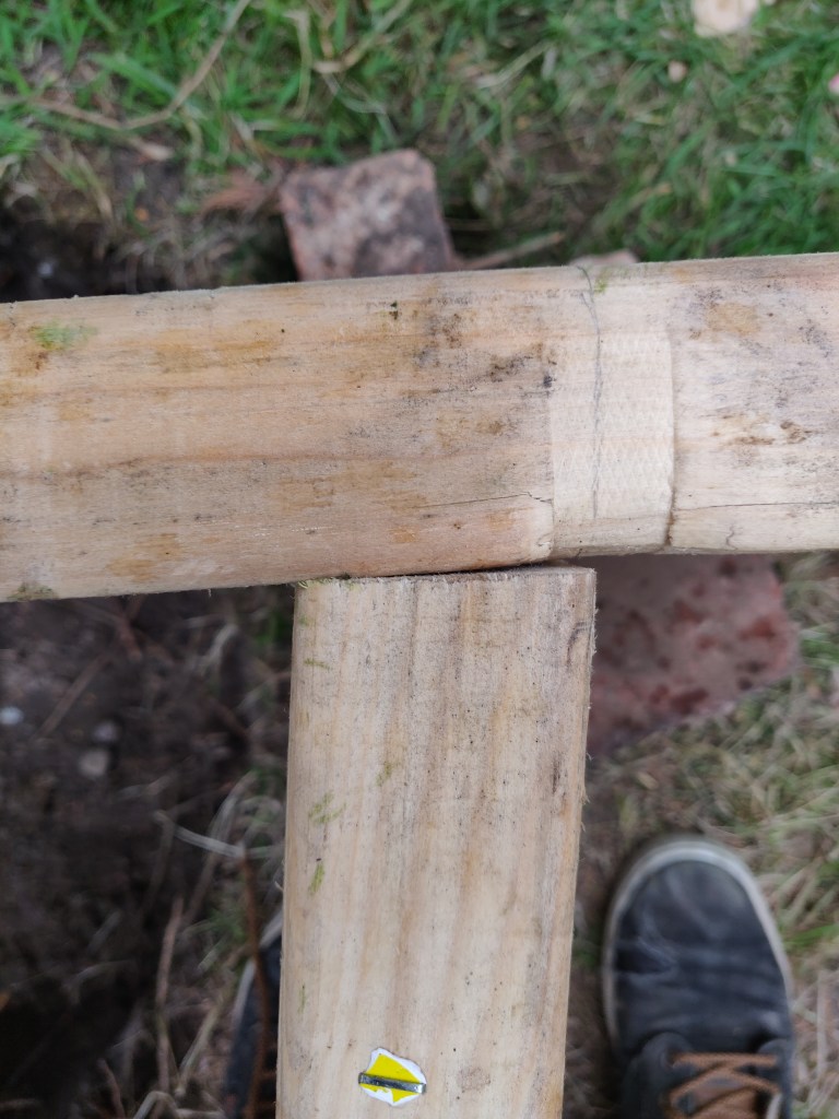 These timbers are 7 meters long, which meant I didn’t have to join them. On reflection it would have been easier to just use shorter lengths and join them!