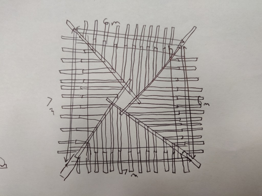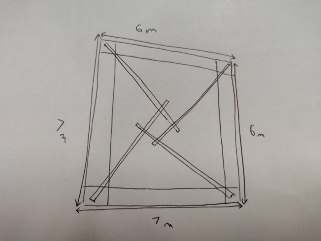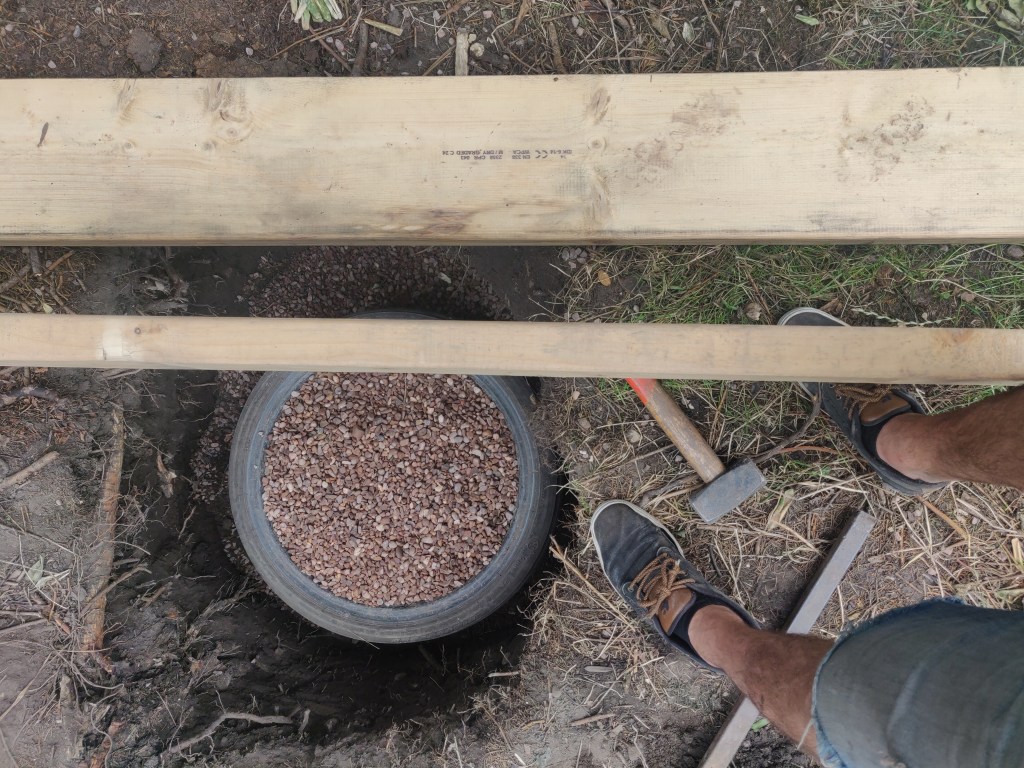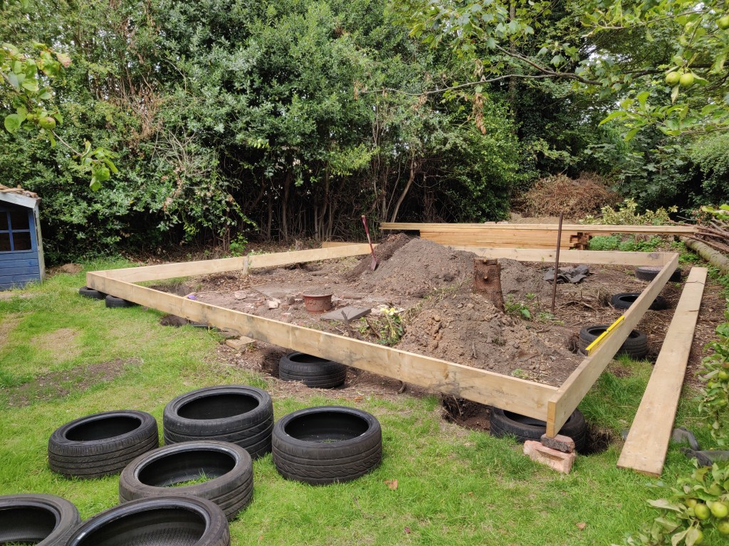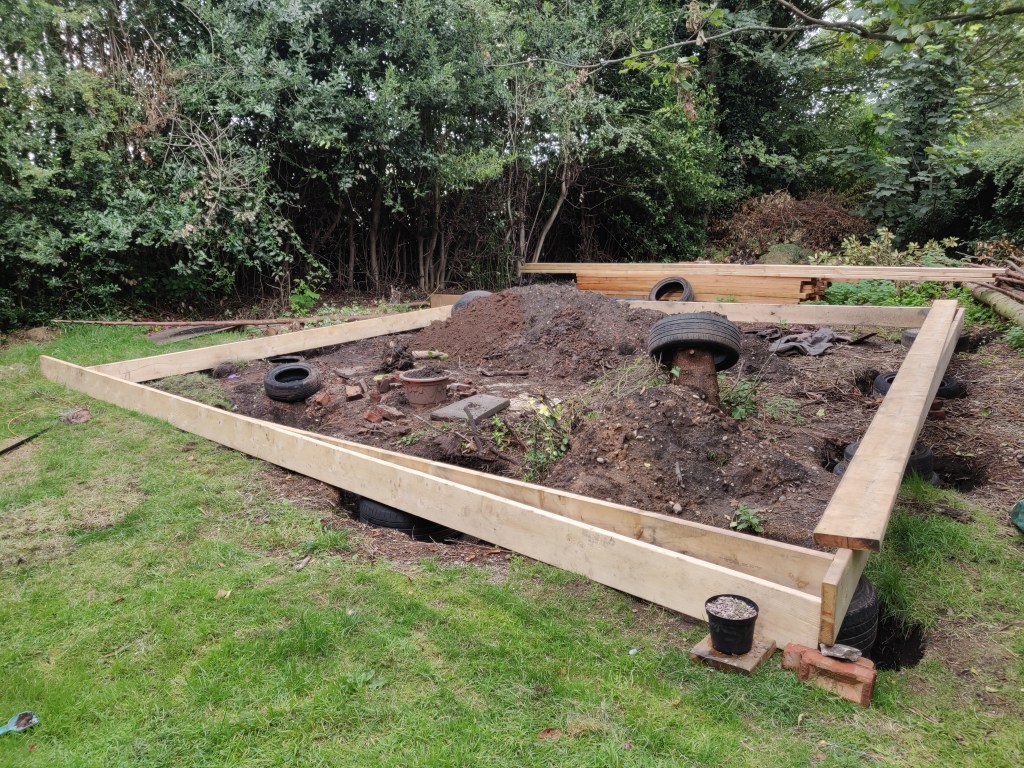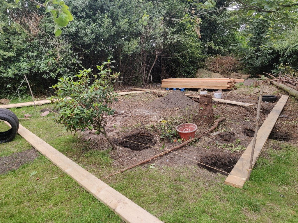 These timbers are 7 meters long, which meant I didn’t have to join them. On reflection it would have been easier to just use shorter lengths and join them!
